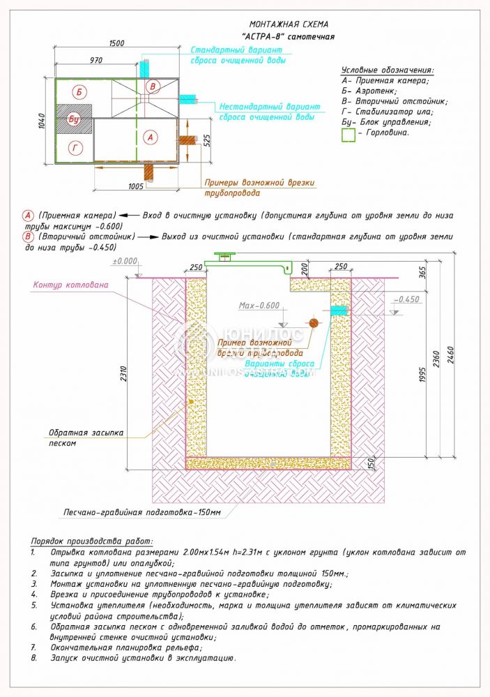 Септик Юнилос Астра 8 имеет следующие преимущества: